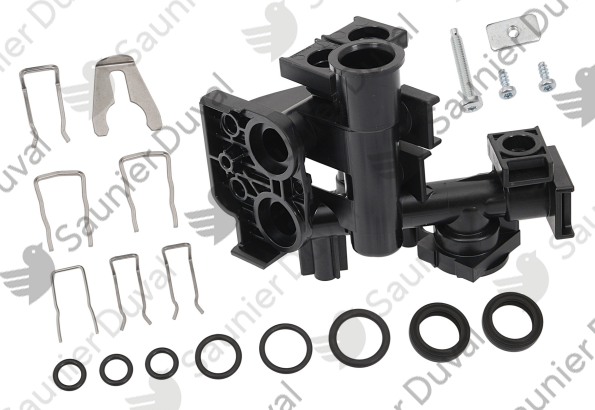 Pièce détachée d’origine Saunier Duval : Bloc hydraulique, R-SD sortie. Référence fabricant : 0020195266.